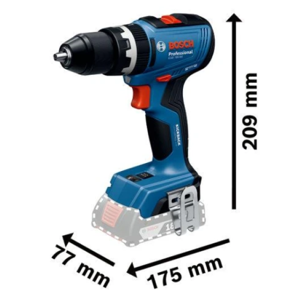 Акумулаторният комплект BOSCH GSB 18V-65 + GWS 18V-8 + GBA 2x4,0Ah + GAL 18V-40 + RAF чанта предлага мощна комбинация от ударен винтоверт и ъглошлайф, осигуряваща висока производителност и надеждност при професионална работа. Винтовертът разполага с безчетков мотор с въртящ момент 65 Nm, регулируем в 20 степени, скорост на празен ход от 0 до 2100 об/мин и честота на удара 27 000 уд/мин. Компактната му дължина от 175 mm го прави удобен за работа в ограничени пространства, а вградената двойна LED светлина осигурява отлична видимост. За безопасност е добавена функция KickBack Control, която предпазва от внезапен откат. Ъглошлайфът е оборудван с диск с диаметър 125 mm и вътрешен отвор 22,23 mm, като осигурява скорост на празен ход 11 000 об/мин. Разполага с функции за плавен старт, защита от рестартиране и система KickBack Control, гарантиращи безопасност и контрол по време на работа.