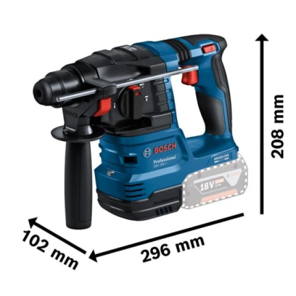 Акумулаторният комплект BOSCH GWS + GBH + GBA 18V 2x4,0Ah + GAL включва ъглошлайф и перфоратор, осигуряващи мощност, надеждност и удобство при професионална работа. И двата инструмента се захранват от 18 V литиево-йонни батерии с капацитет 4,0 Ah, осигуряващи продължителна работа и висока производителност. Ъглошлайфът е с диаметър на диска 125 mm, шпиндел с резба М14 и скорост на празен ход 11 000 об/мин, което го прави подходящ за рязане и шлайфане на различни материали. Перфораторът осигурява енергия на удара 1,9 J, честота до 4675 удара в минута и скорост на празен ход 0 – 1050 об/мин. Оборудван е със захват SDS-plus и функции KickBack Control и Vibration Control, които гарантират безопасност и комфорт по време на работа.
