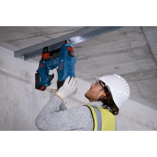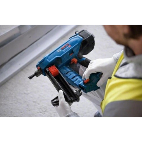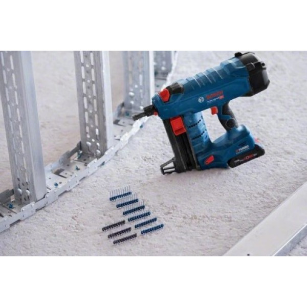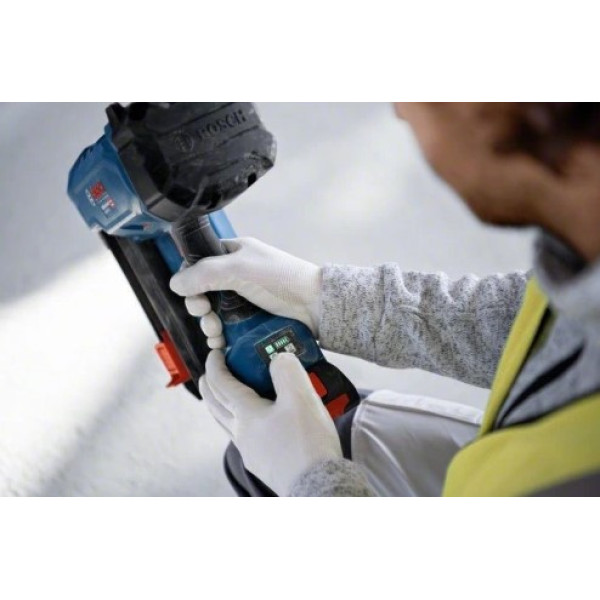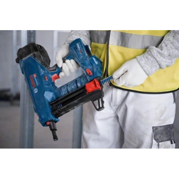 Компактните размери и тегло от 4,1 kg без акумулатор позволяват удобно маневриране и работа в труднодостъпни зони. Моделът е подходящ за пирони с диаметър от 2,7 до 3 mm и дължина от 13 до 38 mm, а магазинът с капацитет 22 броя гарантира плавна и непрекъсната работа.