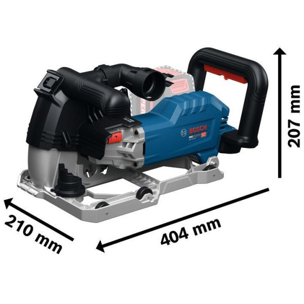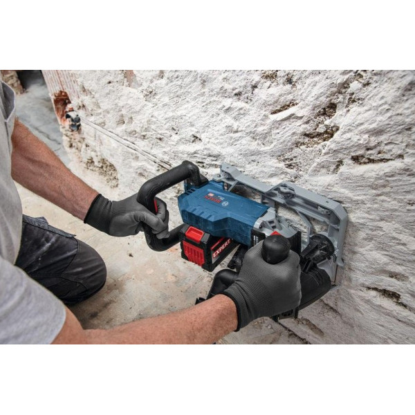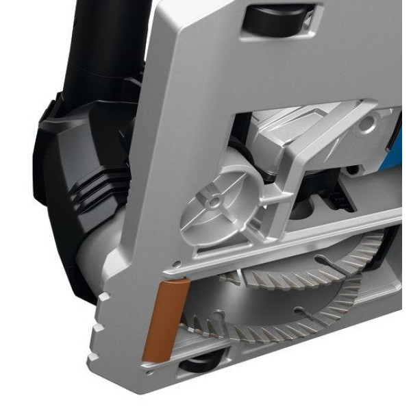 Акумулаторната фреза за канали BOSCH GNF 18V-40 – Solo + L-Boxx е мощен професионален инструмент за прецизно фрезоване на канали в стени и тавани. Високопроизводителният безчетков мотор осигурява отлична акумулаторна ефективност, стабилно подаване и голяма дълбочина на рязане при работа в бетон, зидария и други твърди материали. Подобреният контрол се постига чрез ергономично разположени ръкохватки за удобна работа във всички посоки, както и чрез ролките на основната плоча и ясните маркировки за точно позициониране на срезовете. Компактният дизайн позволява работа възможно най-близо до ръба, а настройките се извършват бързо и без инструменти. Моделът разполага с ефективно прахоулавяне, спирачна функция и защита срещу повторно включване за по-висока безопасност и по-чиста работна среда. Работи с два диамантени диска за оформяне на канали за кабели, тръбопроводи и инсталации за вода и отопление. Доставя се в практична L-Boxx, без батерия и зарядно устройство, и е съвместима с професионалната 18 V система и AMPShare на BOSCH.