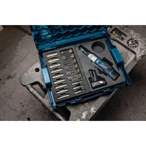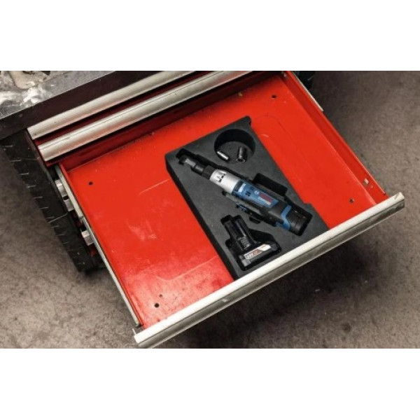 Акумулаторната тресчотка BOSCH GRC 12V-60 1/2 SN-Solo е перфектен и мощен инструмент, предназначен за професионални и сервизни приложения. Тя работи с напрежение 12 V и предлага въртящ момент до 60 Nm, като дължината на главата от 79 mm осигурява лесен достъп дори в най-тесните пространства. Захватът 1/2" я прави универсална за работа с различни вложки, а безчетковият мотор гарантира висока ефективност и дълъг експлоатационен живот. Ергономичната конструкция и удобният захват осигуряват максимален контрол при работа, докато спусъкът с регулиране на скоростта позволява плавно и прецизно настройване според конкретното приложение. Вграденото LED осветление подобрява видимостта при работа в слабо осветени условия. Тресчотката е особено подходяща за автомобилната индустрия, монтаж на оборудване, строителни и ремонтни дейности. Съвместима е с всички 12 V акумулаторни батерии BOSCH и се предлага във вариант Solo – без батерия и зарядно устройство.