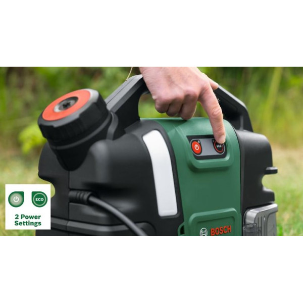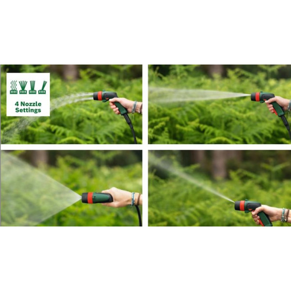 Моделът разполага с два режима – High и Eco – които позволяват адаптиране според вида на повърхността, както и четири различни струи: концентрирана, 15°, 50° и shower за деликатно измиване. С маркуч с дължина 2,8 метра и удобни аксесоари, водоструйката предлага комфорт и гъвкавост при работа. Батерията с капацитет 2,0 Ah осигурява до 13 минути непрекъсната употреба, а пълното зареждане се постига за приблизително 65 минути.