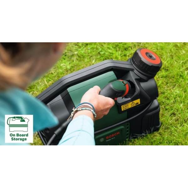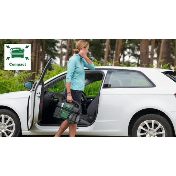 Акумулаторната водоструйка BOSCH FONTUS 18V-6 е практично и компактно решение за почистване, което комбинира удобството на работа без кабели с надеждна ефективност. Тя работи с 18V батерия от платформата POWER FOR ALL, осигуряваща пълна свобода на движение и съвместимост с други уреди от серията. Резервоарът с вместимост 6 литра позволява работа без връзка към водопровод, а налягането до 20 бара я прави подходяща както за измиване на велосипеди и автомобили, така и за почистване на градински мебели и инструменти.