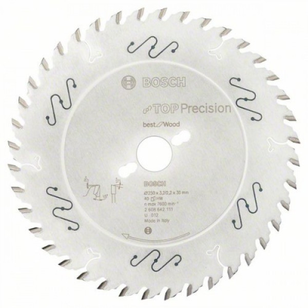 Циркулярен диск BOSCH Ф250х3.2 Best for Wood Z40 за дърво със следните характеристики: