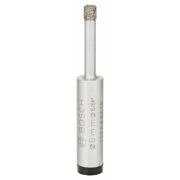 Диамантено свредло за мокро пробиване във фаянсови плочки BOSCH 6 mm е подходящо за меки фаянсови плочки за стена до много твърди подови керамични плочки като фина каменна керамика, цилиндрична опашка. За работа с акумулаторни винтоверти и бормашини с 13 mm патронник. Пробивайте без удар. Оптимални обороти 1 500 1/min. Диаметър - 6 mm.
