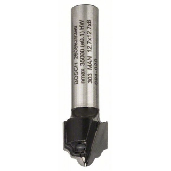 Служи за направа на кантове по детайли на корпуси, дъна на чекмеджета, рамки, както и за оформяне на профили на венци и рамки. С водещ сачмен лагер за лесно движение на детайла. С два режещи ръба, твърдосплавен. Опашка на фрезера - 8.0 mm, диаметър - 12.7 mm, работна дължина - 12.4 mm, радиус - 2.4 mm и обща дължина - 46.0 mm.