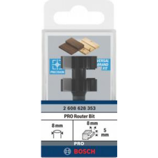 Фрезер за профил „перо“ BOSCH за фрезоване на класическия профил нут и перо върху кантове от масивно дърво в комбинация с дисков канален фрезер с работна дължина 5 mm. Опашката на фрезера е 8 mm, диаметъра на фрезера е 25 mm, а общата дължина е 58 mm.