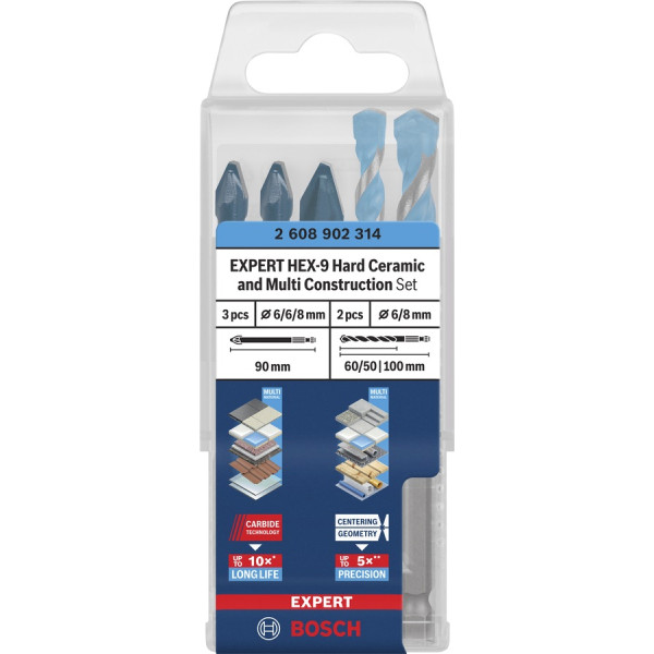 Етикети: Комплект свредла BOSCH EXPERT HEX-9 Hard Ceramic and Multi Construction, 5 броя, 2608902314, Свредла с шестостенна опашка