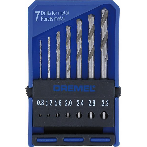 Dremel комплектът за точно пробиване (628) съдържа 7 свредла за пробиване в дърво или мек метал.