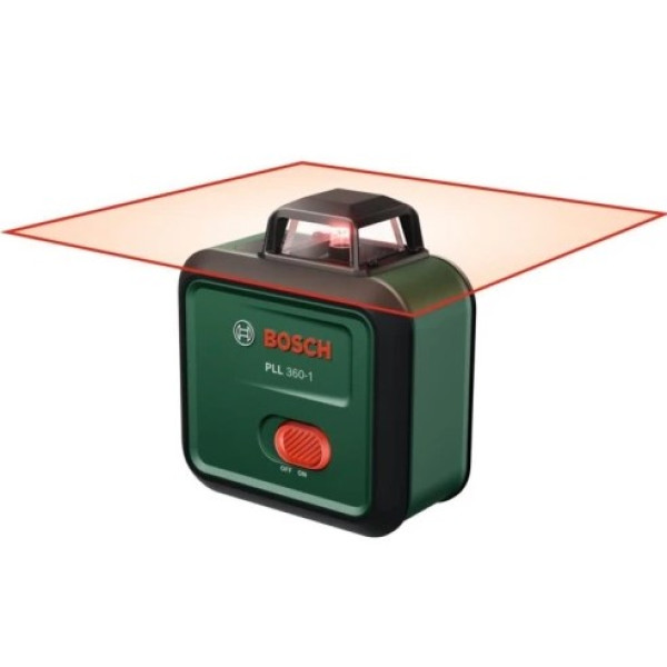 Лазерният нивелир BOSCH PLL 360-1 е удобен и надежден инструмент за бързо и прецизно нивелиране при ремонтни и монтажни дейности. Той проектира хоризонтална лазерна линия на 360°, което позволява равномерно подравняване във всички посоки, без необходимост уредът да се премества. Самонивелира се за около 4 секунди в диапазон ±4°, като осигурява точност на измерване ±0,4 mm/m. С работен обхват до 24 m моделът е подходящ за различни приложения в жилищни и строителни среди. Устройството се захранва с 2 батерии 1,5 V LR6 (AA), класифицирано е като лазер клас 2 и разполага със стандартен 1/4″ резбов накрайник за монтаж на статив, което гарантира стабилност и удобство при работа.