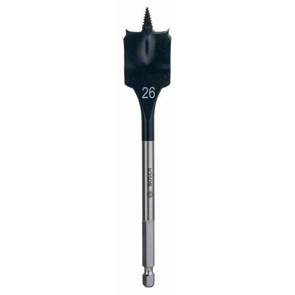Плоското фрезово свредло BOSCH Self Cut Speed 26x152 е с диаметър 26 mm и обща дължина 152 mm. Опашката е шестостенна. Служи за пробиване на дърво и камък. Подходящо за твърда и мека дървесина, леки строителни материали и гипсокартон.