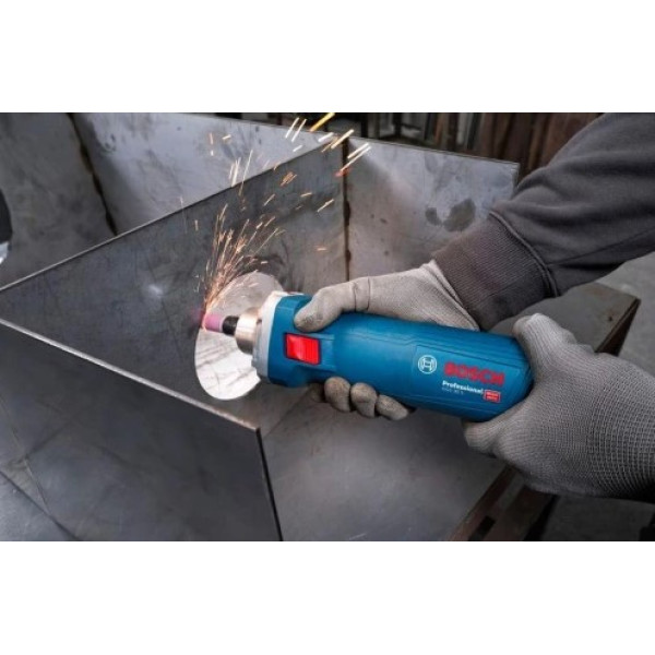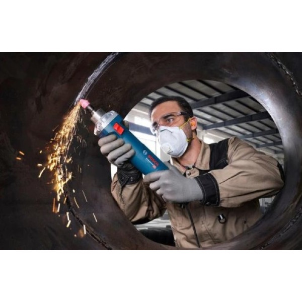 Правият шлайф BOSCH GGS 30 S е професионален електрически инструмент, предназначен за прецизна обработка на метал, шлифоване на заваръчни шевове, премахване на ръжда и други специализирани задачи. Работи с напрежение 230 V и е оборудван с мощен 750 W мотор, който осигурява висока производителност и надеждност при натоварена работа. Инструментът предлага регулируема скорост в диапазон от 7 000 до 33 000 об/мин, позволявайки оптимално настройване според конкретния материал и приложение. С цанга с диаметър 6 mm, максимален размер на инструмент за полиране 45 mm и шлифовъчно тяло до 25 mm, шлайфът осигурява гъвкавост за разнообразни приложения. За безопасност и комфорт при работа моделът е снабден с функции като KickBack Control, мек старт и защита от повторно включване. Ергономичният дизайн и блокировката на шпиндела улесняват работата и правят смяната на аксесоарите бърза и удобна.