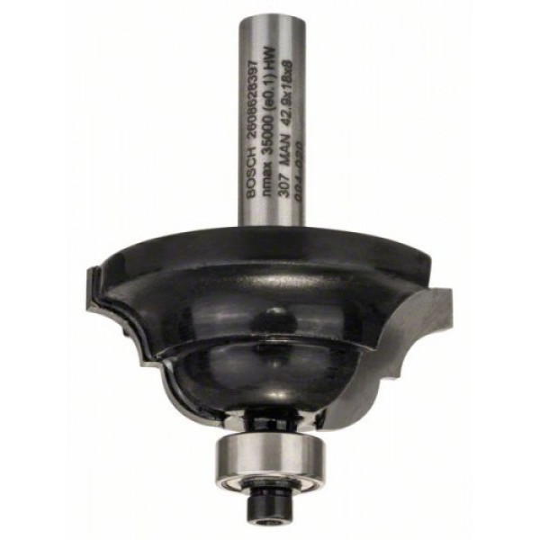 За направа на кантове по детайли на корпуси, дъна на чекмеджета, рамки, както и за оформяне на профили на венци и рамки. С водещ сачмен лагер за лесно движение на детайла. С два режещи ръба, твърдосплавен. Опашка на фрезера - 8 mm, широчина на фрезера -15.0 mm, работна дължина - 18.0 mm, радиус - 6.3 mm и обща дължина - 60.0 mm.