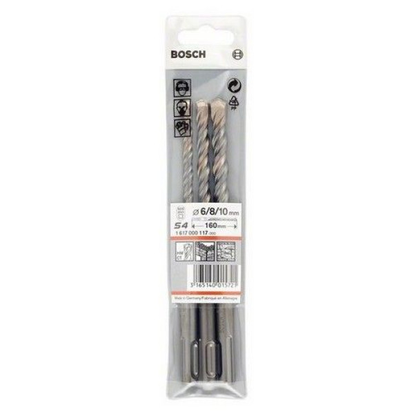 Комплектът свредла за бетон BOSCH съдържа три свредла за пробиване в бетон за работа с перфоратори със SDS-PLUS захват. Свредлата са с диаметър 6/8/10 mm.