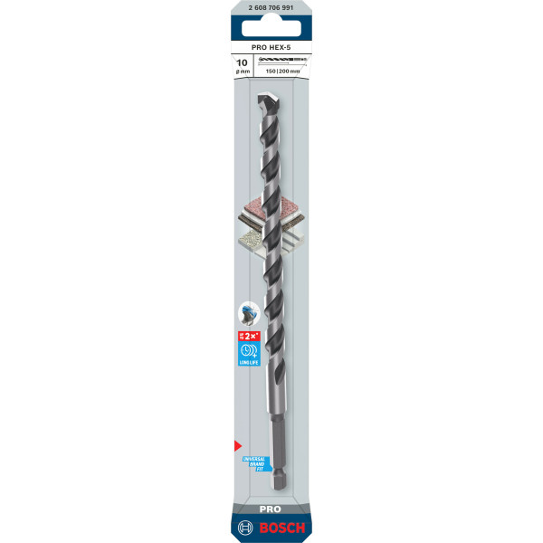 Етикети: Свредло BOSCH PRO HEX-5, 10x150x200 mm, 2608706991, Свредла с шестостенна опашка