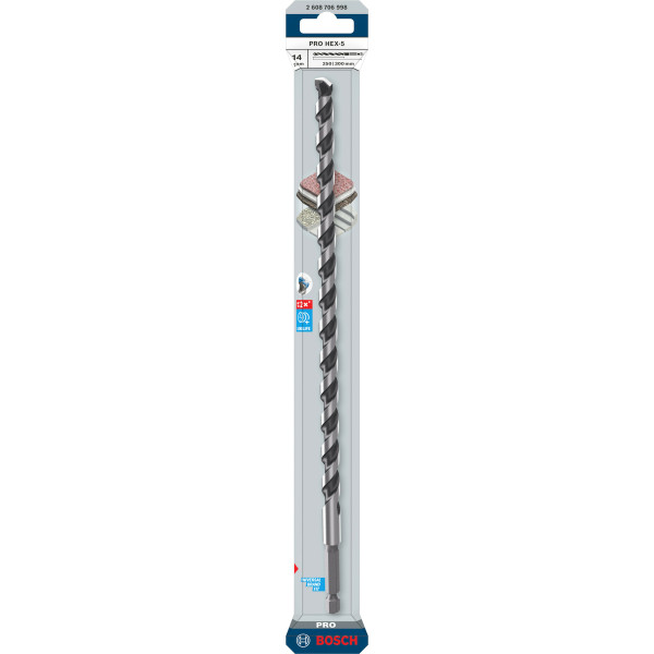 Етикети: Свредло BOSCH PRO HEX-5, 14x250x300 mm, 2608706998, Свредла с шестостенна опашка