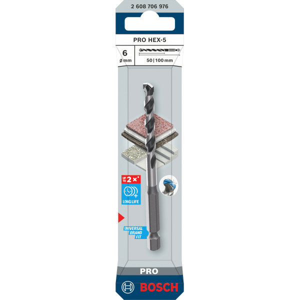Етикети: Свредло BOSCH PRO HEX-5, 6x50x100 mm, 2608706976, Свредла с шестостенна опашка