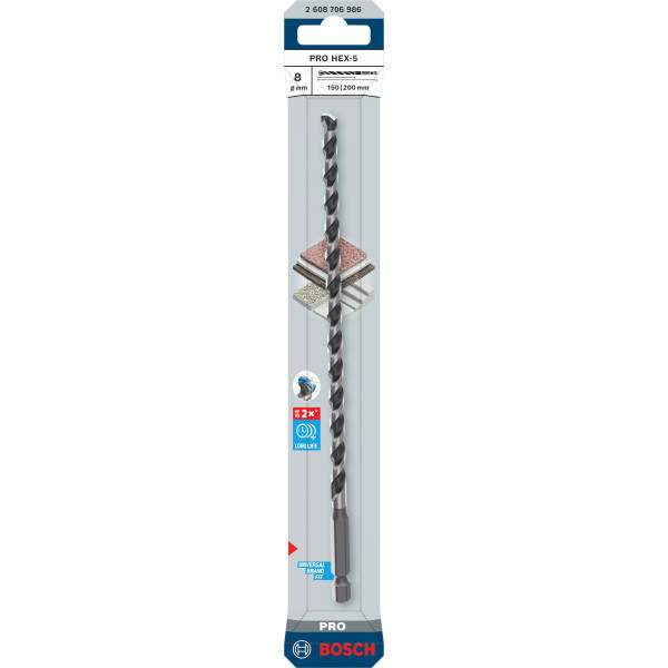 Етикети: Свредло BOSCH PRO HEX-5, 8x150x200 mm, 2608706986, Свредла с шестостенна опашка
