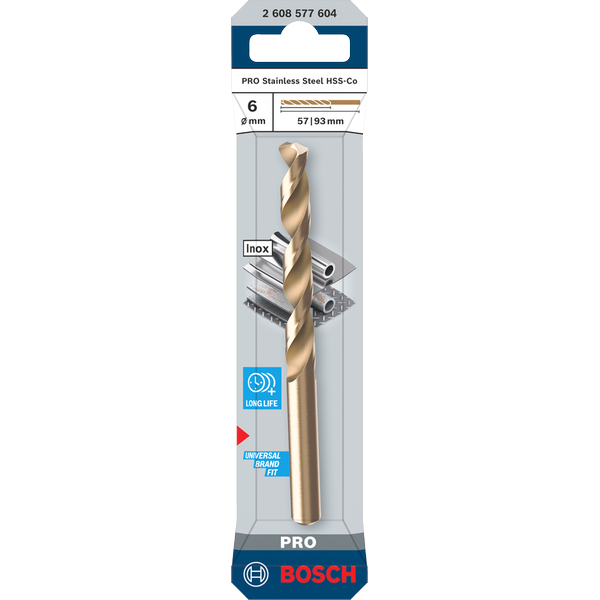Спирално свредло BOSCH PRO Stainless Steel HSS-Co, 6 x 57 x 93 mm